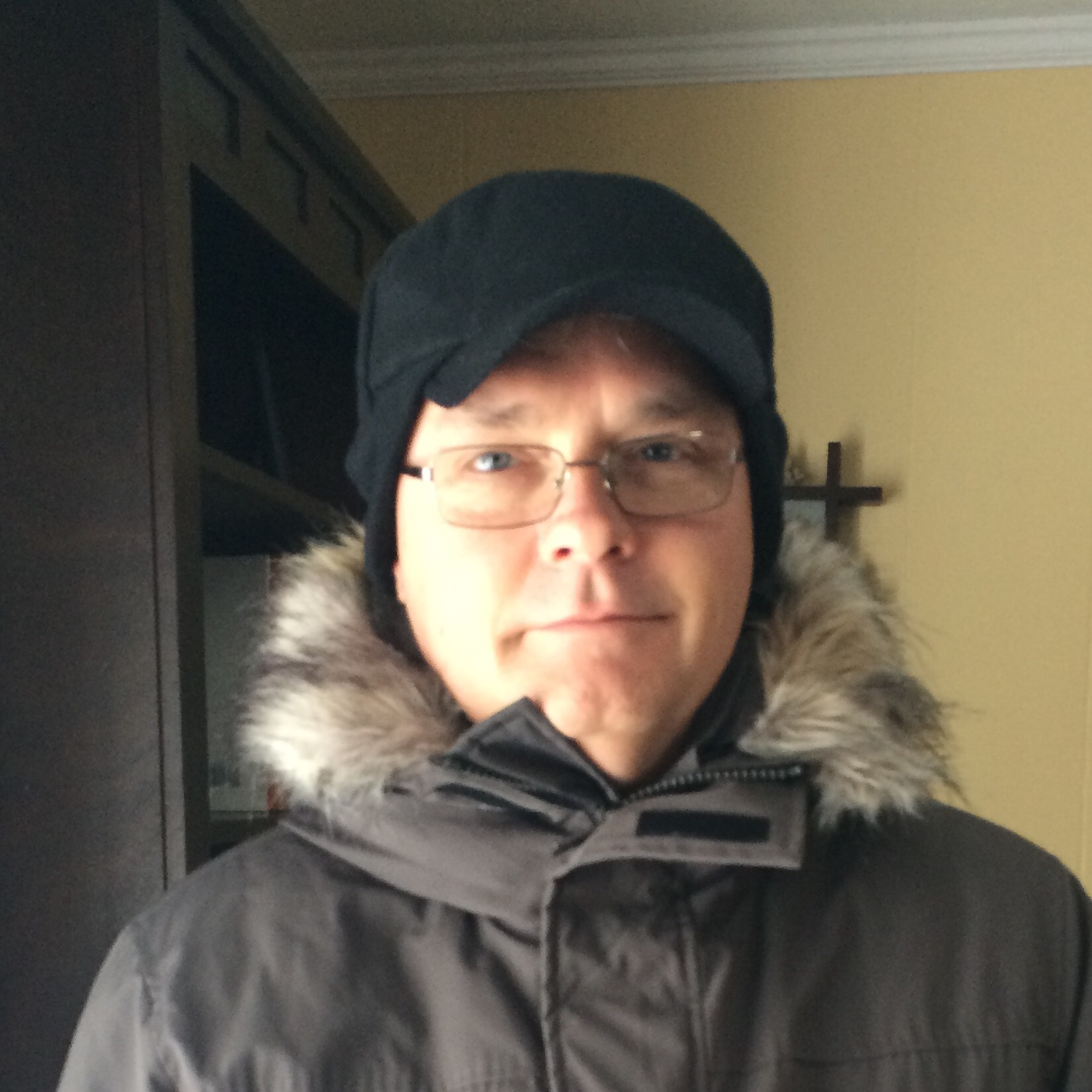 It’s been cold lately and I needed something to keep my head warm while I walk the dogs. My parka has a hood that keeps me warm but limits my vision.